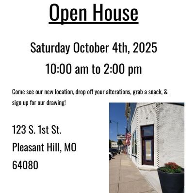 Come see our new location, drop off your alterations, grab a snack, & sign up for our drawing. We hope to see you there!